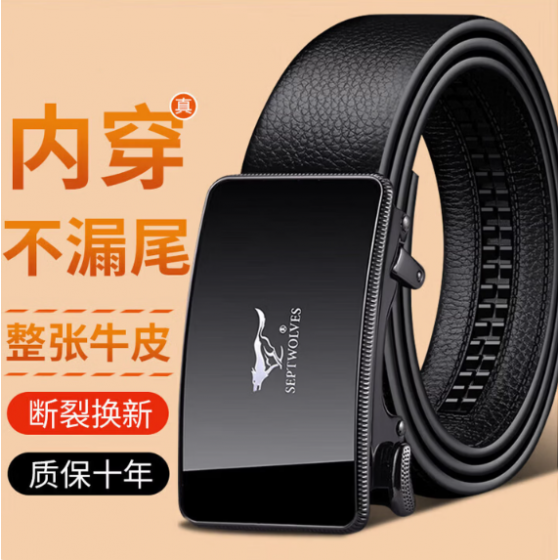 Men's genuine leather automatic buckle belt, inner-wearing type, with inner buckle, first-layer cowhide leather belt