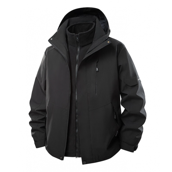 Men's 3-in-1 jacket with hood for autumn and winter, outdoor casual wear